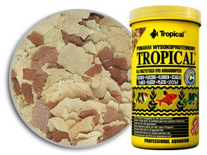 Wysokobiałkowe płatki Tropical to doskonale zbilansowany, wysokoenergetyczny pokarm z linii standardowej przeznaczony do codziennego karmienia ryb wszystkożernych i mięsożernych. Zawarta w pokarmie podwyższona ilość łatwo strawnych białek pochodzenia roślinnego i zwierzęcego, aminokwasów egzogennch oraz odpowiednio dobrany zestaw witamin, makro i mikroelementów wspomaga prawidłowy wzrost i dojrzewanie narybku oraz wspiera ryby dorosłe podczas przystępowania do tarła.