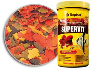 Wieloskładnikowe płatki Supervit z linii premium, to doskonale zbilansowany pokarm przeznaczony do codziennego karmienia ryb wszystkożernych. Zawiera osiem różnych rodzajów płatków, w skład których wchodzi m.in.: naturalny immunostymulator beta-glukan, astaksantyna, glony Kelp, spirulina, skorupiaki, w tym smaczny kryl. Natomiast kilkadziesiąt najwyższej jakości, specjalnie wyselekcjonowanowanych składników pochodzenia zarówno zwierzęcego, jak i roślinnego oraz odpowiednio dobrany zestaw witamin i mikroelementów wspomagają prawidłowy wzrost i rozwój, dostarczają odpowiednią dawkę energii i pokrywają potrzeby żywieniowe nawet najbardziej wymagających gatunków ryb.