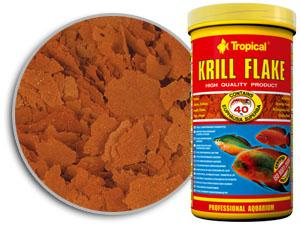 Najwyższej jakości, specjalnie wyselekcjonowane składniki z wysoką zawartością kryla antarktycznego (40%) tworzą wieloskładnikowe, smakowite płatki Krill Flake. To doskonale zbilansowany, wybarwiający pokarm z linii profesjonalnej przeznaczony do codziennego karmienia ryb wszystkożernych i mięsożernych, zwłaszcza wybrednych, które niechętnie przyjmują pokarmy gotowe. Wyjątkowe właściwości aminokwasów zawartych w krylu uatrakcyjniają smak pokarmu, natomiast białko, chityna i nienasycone kwasy tłuszczowe, w tym Omega-3 oraz odpowiednio dobrany zestaw witamin i mikroelementów wspomagają prawidłowy wzrost i rozwój, dostarczają odpowiednią dawkę energii, wzmacniają układ odpornościowy, wpływają na doskonałą kondycję ryb i ich zdolności rozrodcze. Natomiast duża zawartość naturalnych barwników, w tym dobrze przyswajalnej astaksantyny (136 mg/kg), intensyfikuje barwy ryb.