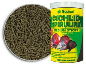 Najwyższej jakości, specjalnie wyselekcjonowane roślinne składniki i glony Spirulina platensis (6%), tworzą pływające pałeczki Cichlid Spirulina Medium Sticks. To doskonale zbilansowany pokarm z linii profesjonalnej przeznaczony do codziennego karmienia średniej wielkości pielęgnic, wymagających w diecie znacznego udziału składników pochodzenia roślinnego, np. roślinożernych pielęgnic z jezior Malawi i Tanganika. Stanowią również doskonałe uzupełnienie diety wszystkożernych pielęgnic i innych gatunków ryb. Wyjątkowe właściwości odżywcze spiruliny, błonnik, stabilizowana witamina C oraz odpowiednio dobrany zestaw witamin i mikroelementów wspomagają prawidłowy wzrost, rozwój i trawienie, chroniąc przed zaparciami i stanami zapalnymi przewodu pokarmowego, zapobiegają otłuszczaniu i wzmacniają układ odpornościowy. Natomiast duża zawartość naturalnych barwników z grupy karotenoidów intensyfikuje barwy ryb, pomaga chronić ich organizmy przed szkodliwym działaniem wolnych rodników oraz wpływa korzystnie na wiele procesów fizjologicznych.