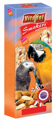 Doskonała, pełnowartościowa przekąska uzupełniająca ptasią dietę z dodatkiem migdałów, wzbogacona zestawem naturalnych witamin. Skład i wielkość dostosowane specjalnie dla dużych gatunków papug (żako, ara, kakadu). Smakowita kolba pomaga w ścieraniu wciąż narastającej tkanki rogowej dziobów, a naturalne, aromatyczne składniki gwarantują zdrowie i witalność.