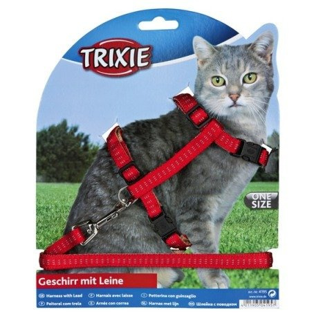 Szelki ze smyczą dla kotów wykonane z wytrzymałej taśmy nylonowej, posiadają możliwość regulacji oraz zapięcia zatrzaskowe, dzięki którym założenie i zdjęcie szelek jest szybkie i bezproblemowe.
