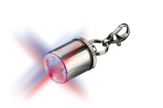 Dioda zasilana jest baterią, która znajduje sie w komplecie. Dwa kolory migającego światła: niebieski i czerwony. Załączanie i wyłączenie światełka następuje przez przekręcenie prawo/lewo.
