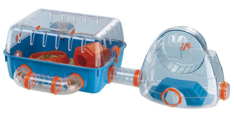 Odpinane klipsy pozwalają na oddzielenie dna klatki co sprawia, że jej sprzątanie jest proste, łatwe i wygodne. Klatka wykonana jest z doskonałej jakości plastiku, częściowo przezroczystego, aby można było łatwo obserwować zwierzątko. To idealne miejsce do zabawy, jedzenia i odpoczynku dla chomiczka, myszki lub innych małych gryzoni.