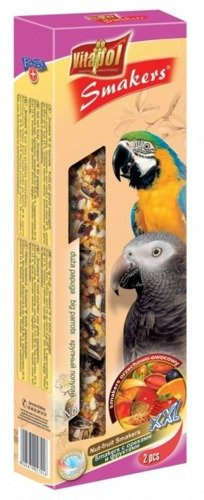 Doskonała, pełnowartościowa przekąska uzupełniająca ptasią dietę. Wyprodukowana z najlepszej jakości ziaren wzbogaconych zestawem witamin. Skład i wielkość XXL dostosowane specjalnie dla dużych gatunków papug (żako, ara, kakadu). Smakowita kolba pomaga w ścieraniu wciąż narastającej tkanki rogowej dziobów, a naturalne, aromatyczne składniki gwarantują zdrowie i witalność. Wskazane szczególnie w okresie wymiany i formowania upierzenia.