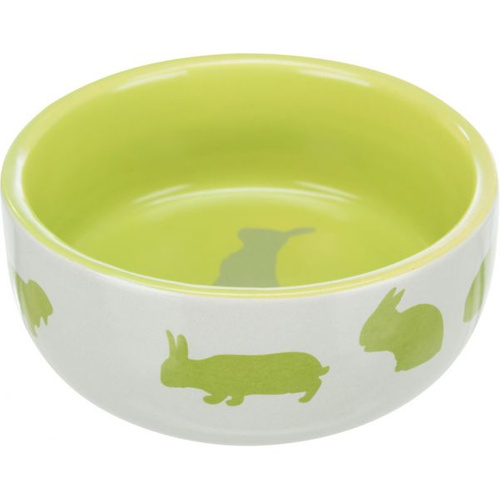 Miska ceramiczna dla królika, na wodę lub pokarm z eleganckim motywem królika. Łatwa do czyszczenia. Trudna do przesunięcia i zniszczenia przez zwierzątko.